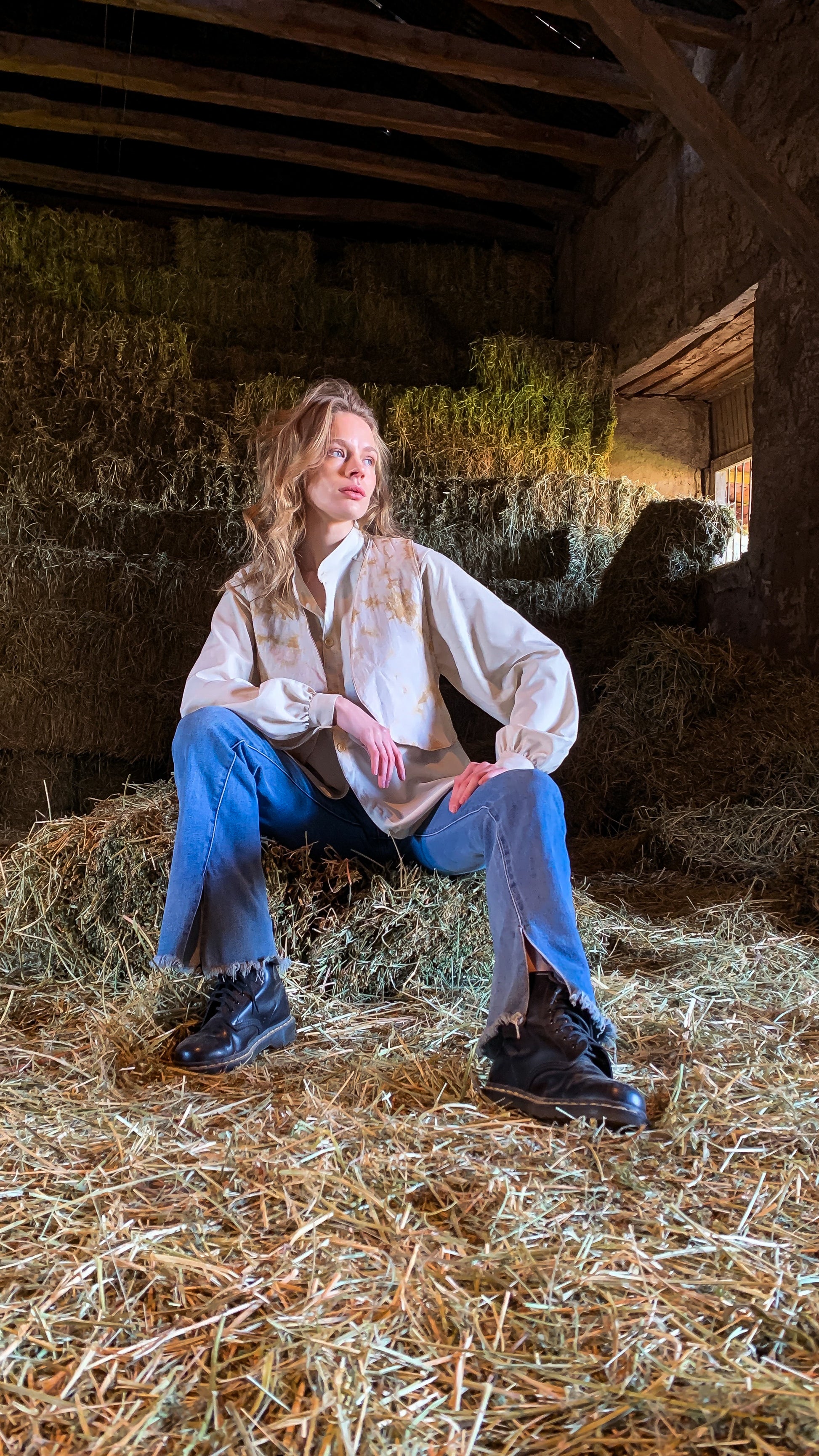 - Esta prenda fue delicadamente teñida a mano con colores orgánicos extraídos de manera sustentable de la corteza de eucalipto.