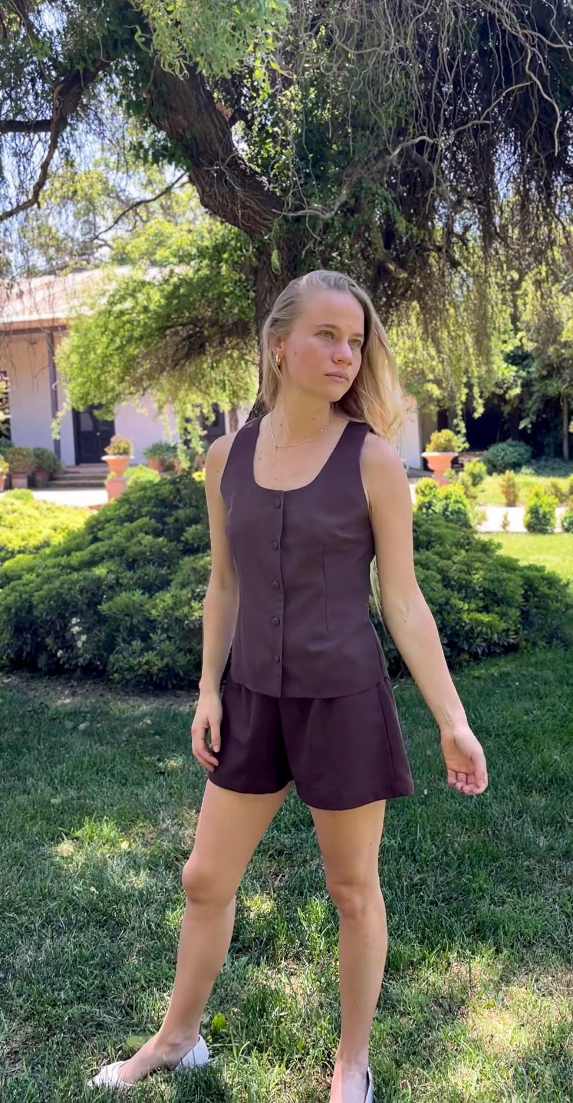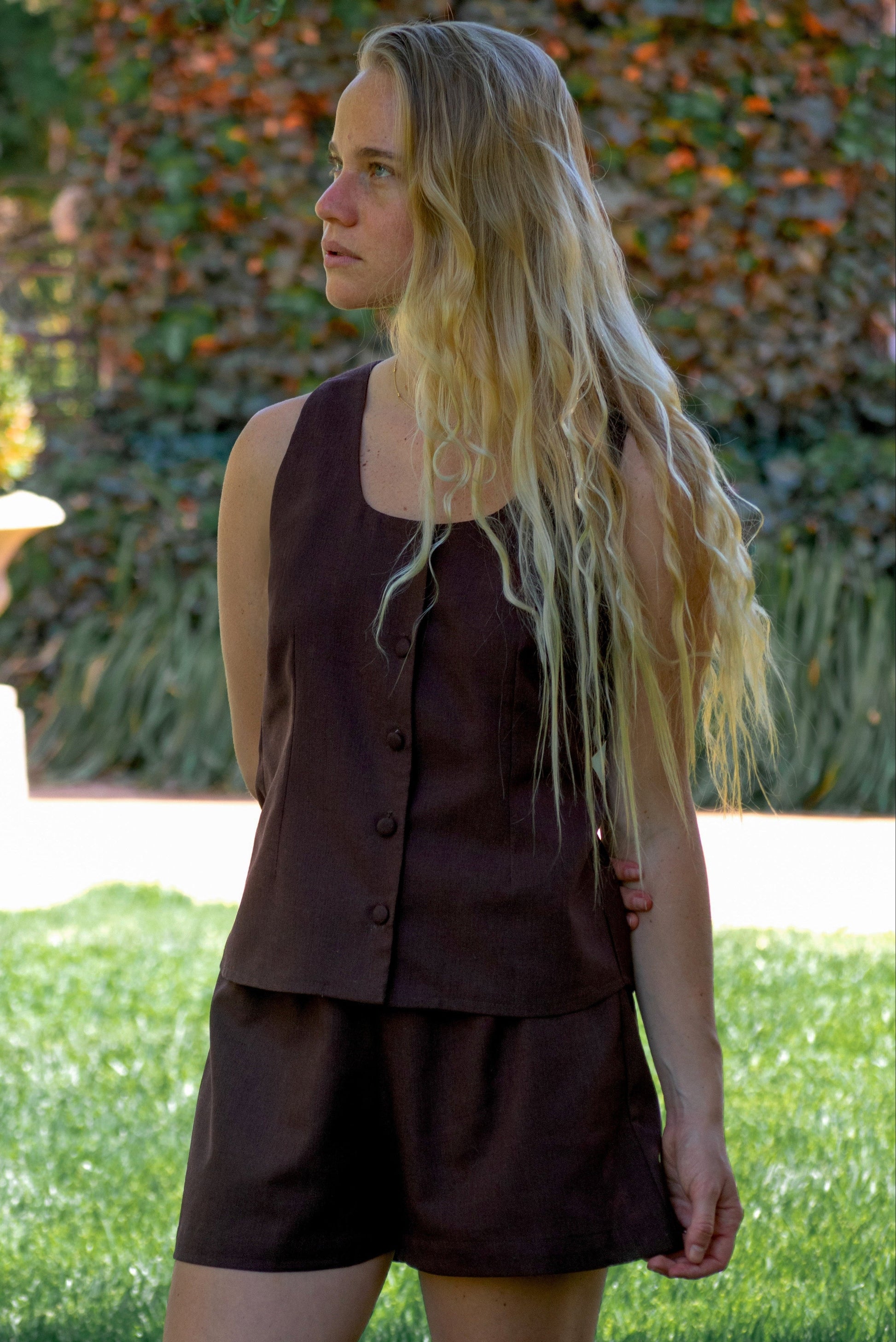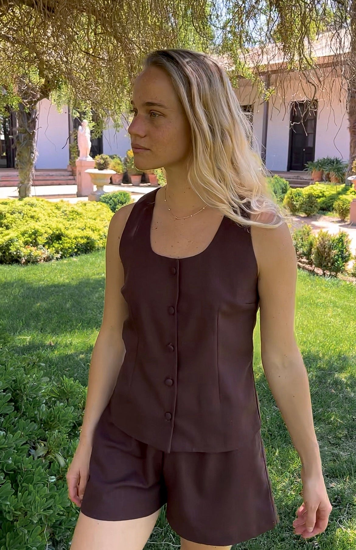 Nuestro Vest es una prenda inspirada en el pasado, rediseñada con un aire contemporáneo. De escote semi curvo y líneas suaves, resalta la silueta con delicadeza. Sus pinzas delanteras y en la espalda aseguran un calce único, mientras los botones forrados a mano aportan un toque artesanal y elegante. Ideal para el día a día o para looks de oficina, siempre destacando con estilo. Queda maravilloso como conjunto si quieres resaltar aún más tu look.