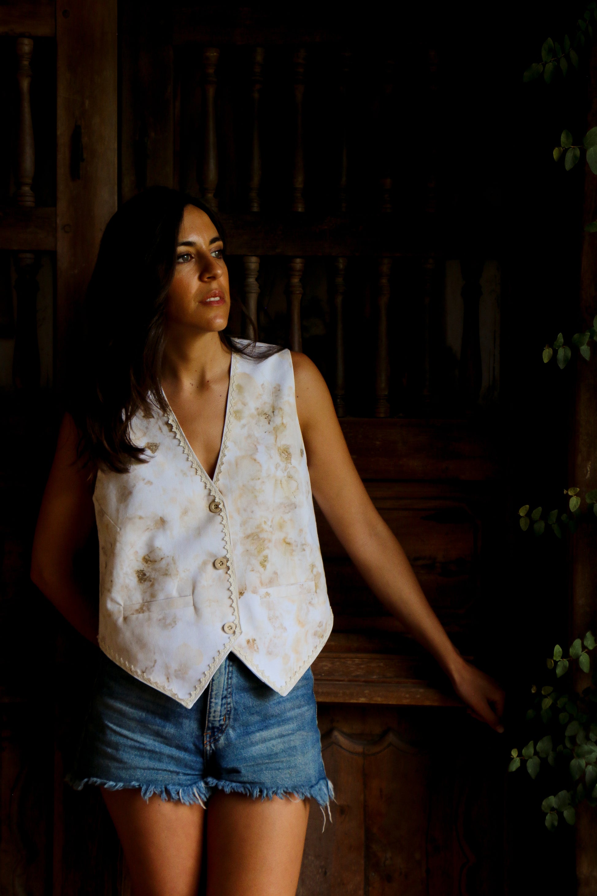 - Su estampado fue delicadamente teñido a mano con colores orgánicos extraídos de flores, raíces y cortezas.