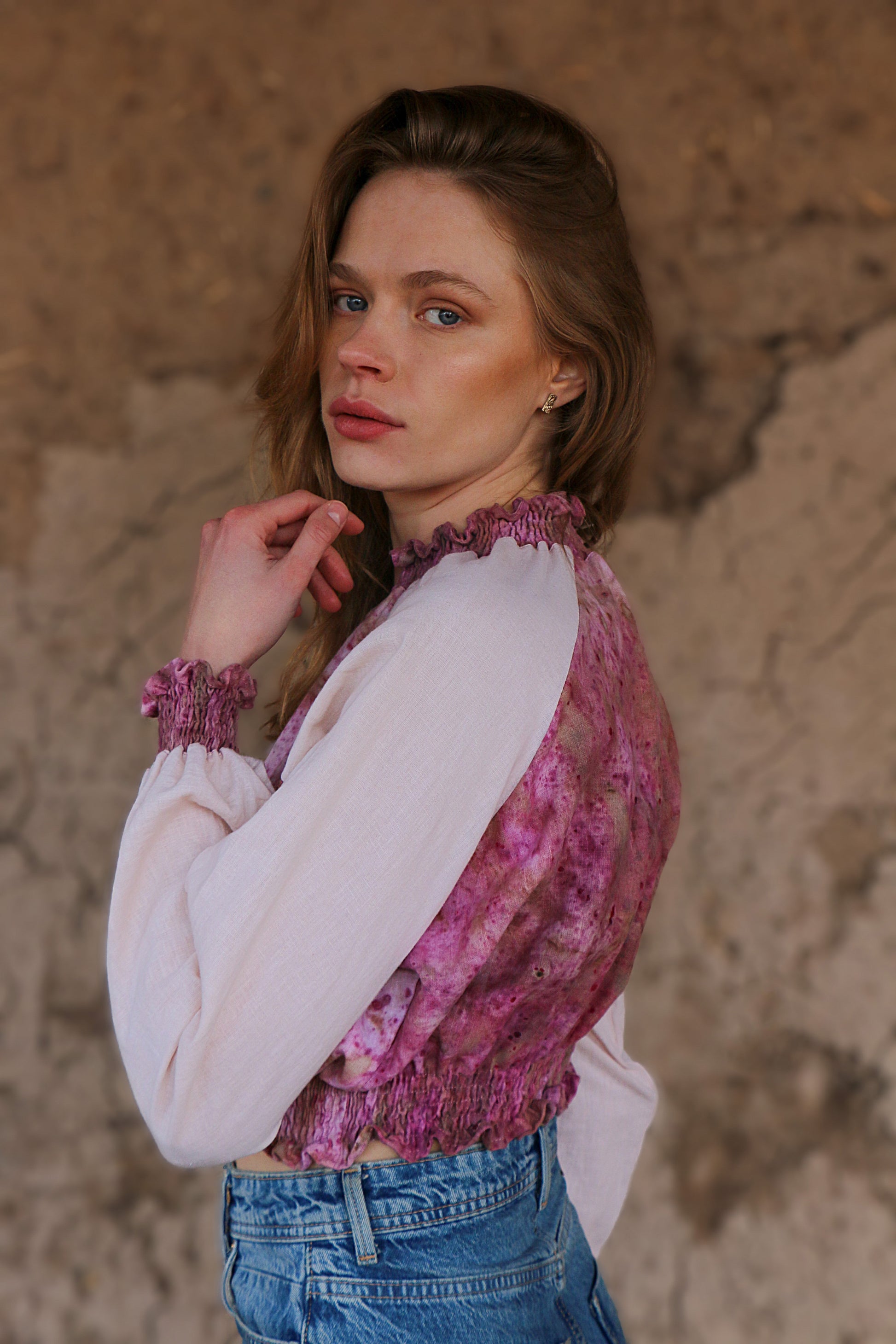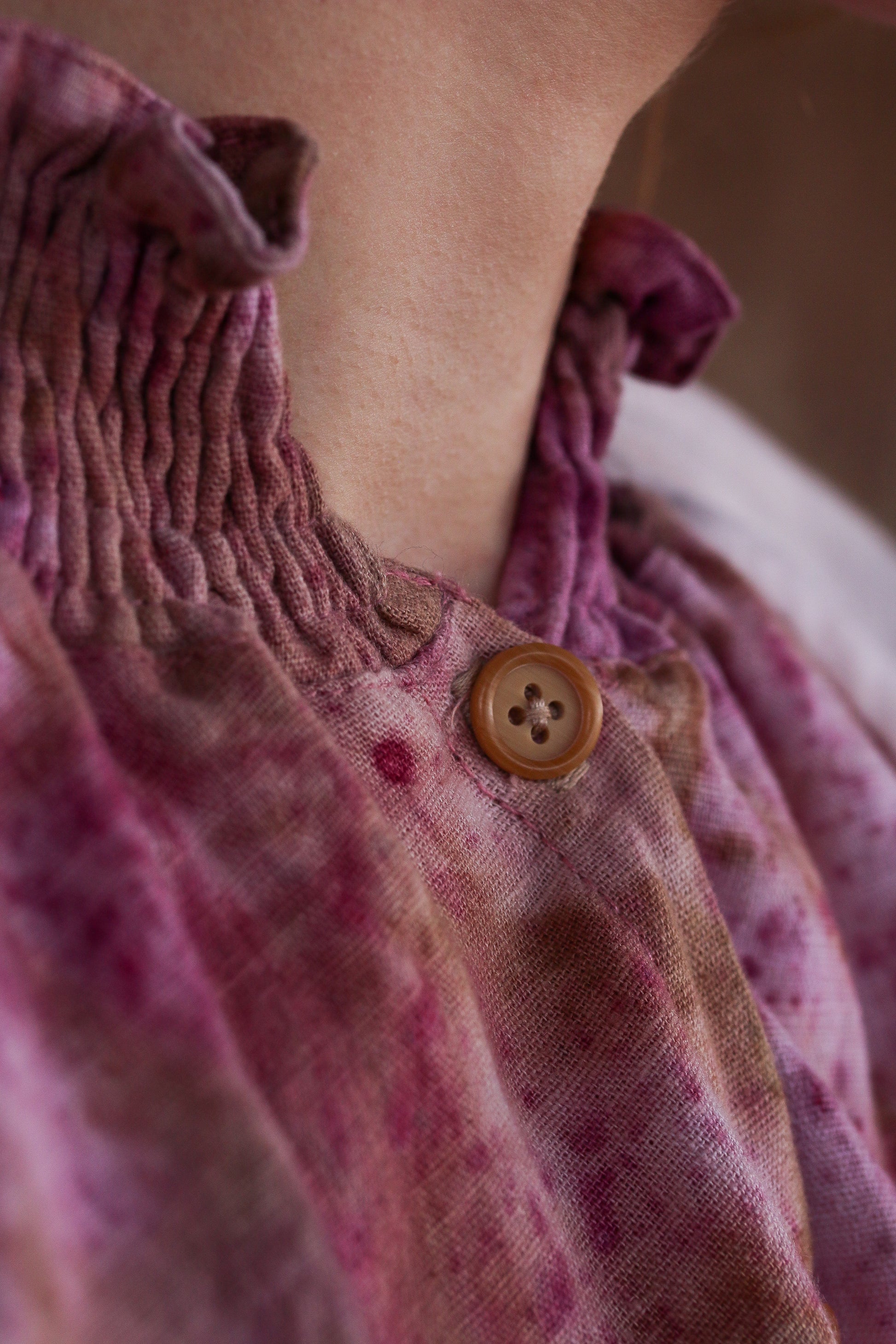 - Esta prenda fue teñida artesanalmente con colores orgánicos extraídos de la cochinilla y aromo.