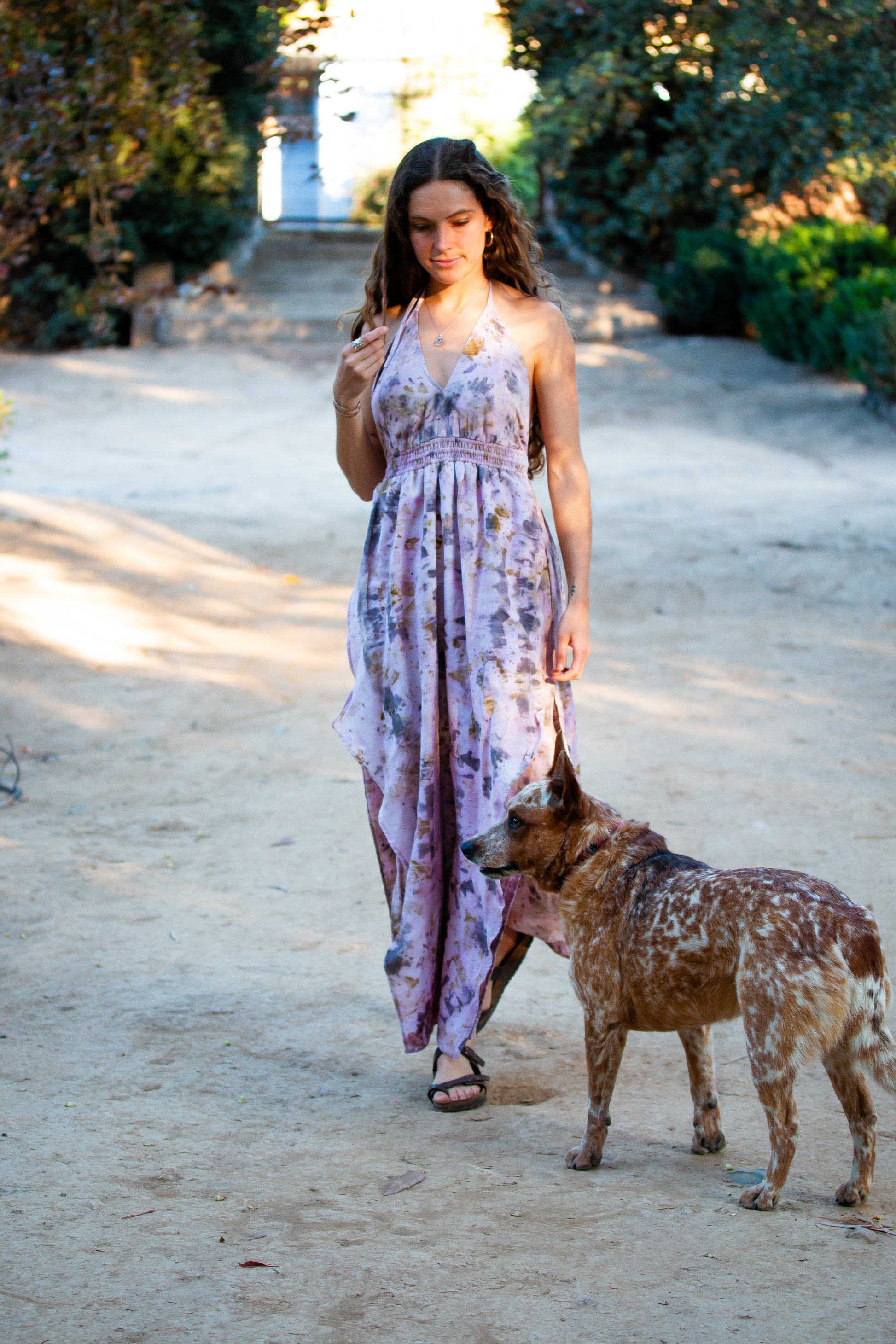 Su colorido en tonos pastel, y cortes en capas le dan una caída única, convirtiéndolo en un vestido elegante y versátil. Pensado para ser usado en el día o la noche, para la playa, matrimonios, etc.